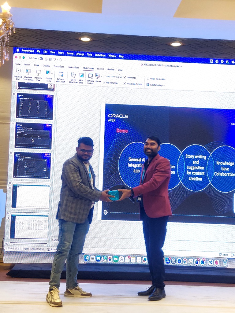 Delivered multiple conference talks on Oracle APEX and its practical applications.